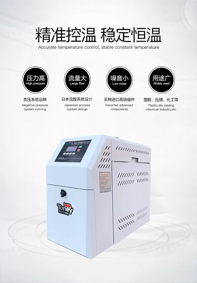 因模温机用的导热油属于有机物,在一定的条件下,导热油会燃烧,而压铸工作温度很高,所以为了防止机械故障和安全事故,在使用模温机时,要知道存在哪些隐患并做好相应安全措施: